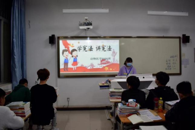 各班团支书通过查找相关资料制作了团课课件,并向同学们普及基本的宪法知识,团课上的互动问答、集体朗读和讨论,使同学们意识到宪法就在我们身边,它与我们的生活息息相关。团课最后,团支书号召同学们要学习宪法,拥护宪法,使宪法精神根植于心,为法治校园建设做出自己的贡献。