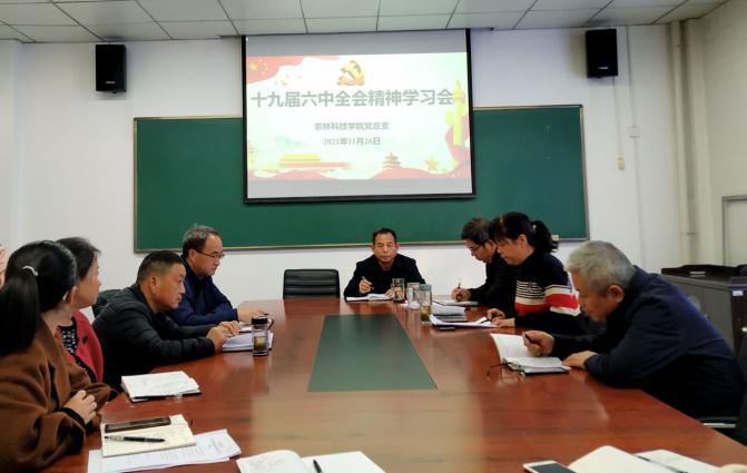11月26日下午,威廉体育williamhill在农学楼201会议室召开了党的十九届六中全会精神学习会,全体教师参加。