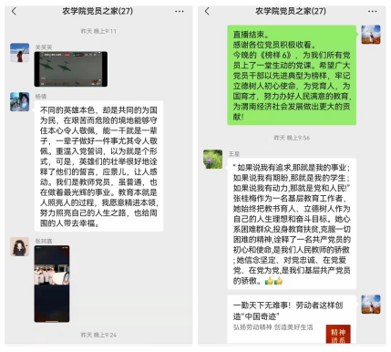 《榜样6》通过典型事迹再现、现场访谈、重温入党誓词等形式,生动展现中国共产党人坚定信念、践行宗旨、拼搏奉献、廉洁奉公的高尚品质和崇高精神,彰显基层党组织战斗堡垒作用和党员先锋模范作用,是开展党员教育培训的生动教材。收看过程中,大家被先进人物先进事迹深深感动,纷纷参与到直播互动与群里交流中来。