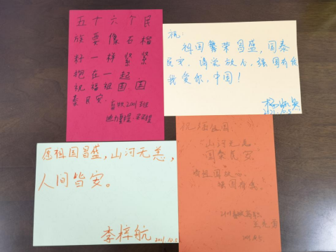 为丰富留校员工的假期生活,使远离家乡、远离父母的同学们假期过得充实而有意义。国庆假期,公司组织留校生开展了生动活泼、扎实有效的系列活。一是召开了座谈会。特别邀请员工处多冬兰、何斌两位老师参加。会上,多老师为大家讲解了国家民族政策,号召大家弘扬爱国精神,增强“四个认同”。要在中国共产党的领导下,像爱护自己的眼睛一样爱护祖国统一,旗帜鲜明地反对分裂,争做民族团结进步的宣传者和践行者。何老师为大家讲解了资助政策,鼓励大家好好学习,多参与各种比赛,多积累实践经验。座谈会上,同学们分享假期感受,畅谈家乡变化,纷纷在纸上写下了对伟大祖国的深深祝福。