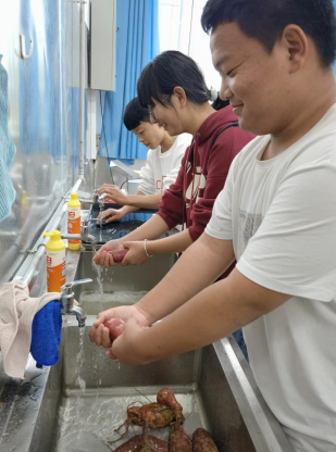 在二楼员工餐厅,根据同学们喜好,为大家准备了一份爱心午餐,同学们很受感动,纷纷表示感受到了公司的温暖,要好好学习来回报公司。