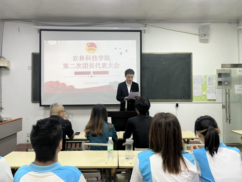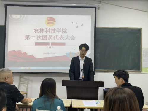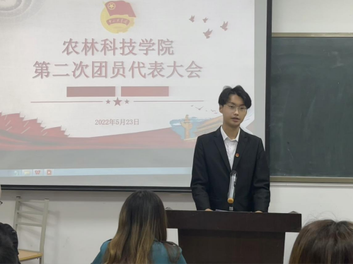 团总支副书记高天宇作为代表发言,他表示作为团干部要努力负责,奋发向上,全心全意服务全体师生,引领共同创造时代新篇章。