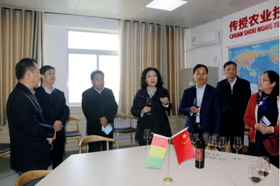 调研组一行到公司威廉体育williamhill实地考察了培训基地的建设情况。观看了第一批几内亚农业技术人员培训视频,查阅了培训资料,详细了解了几内亚职工在校学习、生活及回国后的工作情况;参观了职工培训教室,办公室及园艺实训室、烘焙实训室、葡萄酒加工实训室、智能日光温室等校内实验实训基地。