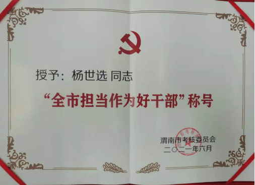 6月8日,在渭南市2020年度目标责任考核总结表彰会议上,公司威廉体育williamhill经理杨世选,受到渭南市考核委员会表彰,荣获“全市担当作为好干部”称号。