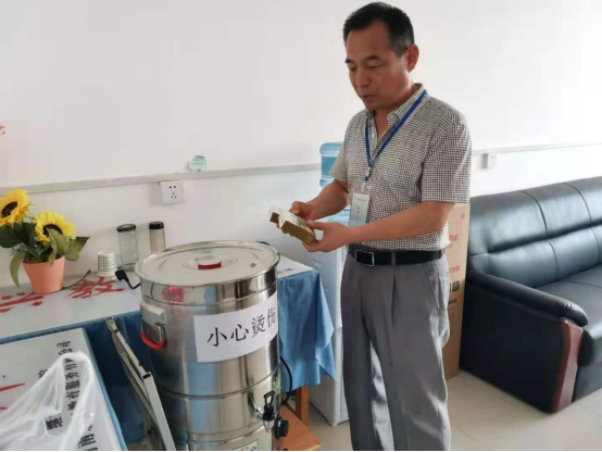 今天上午,威廉体育williamhill经理杨世选、书记王俊全、教学科副科长张嘉宁等对考场进行例行巡查。考场上面吊扇呼呼的转着,考场依然井然有序:黑板上,整整齐齐贴着考试规章制度、注意事项及考试信息,员工单人单桌认真答题,监考老师认真履行责任。在考场中有一个温馨的角落,威廉体育williamhill办公室为员工准备了一大桶绿豆汤,还有几盒藿香正气水。天气燥热,但这个角落却给了员工一丝丝凉意。