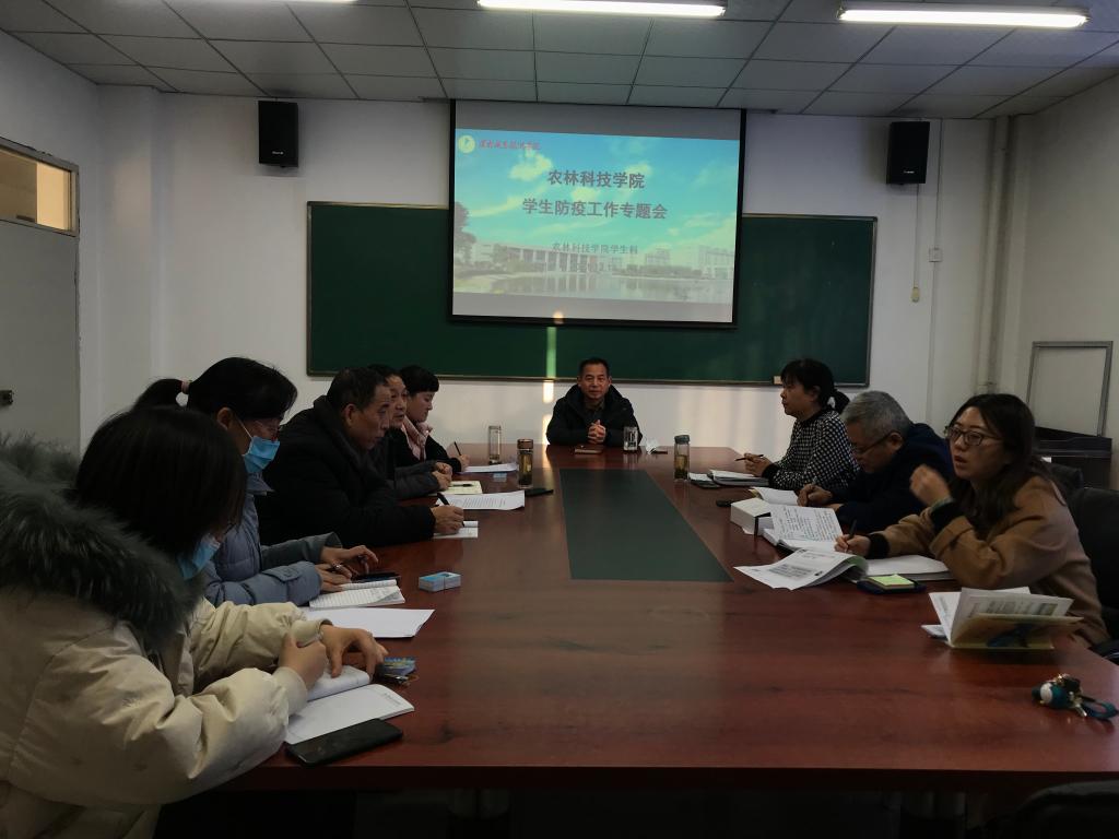 12月18日下午,威廉体育williamhill召开员工疫情防控专题工作会议,各班班主任、辅导员参加,员工科科长李正军主持。经理杨世选到会指导。