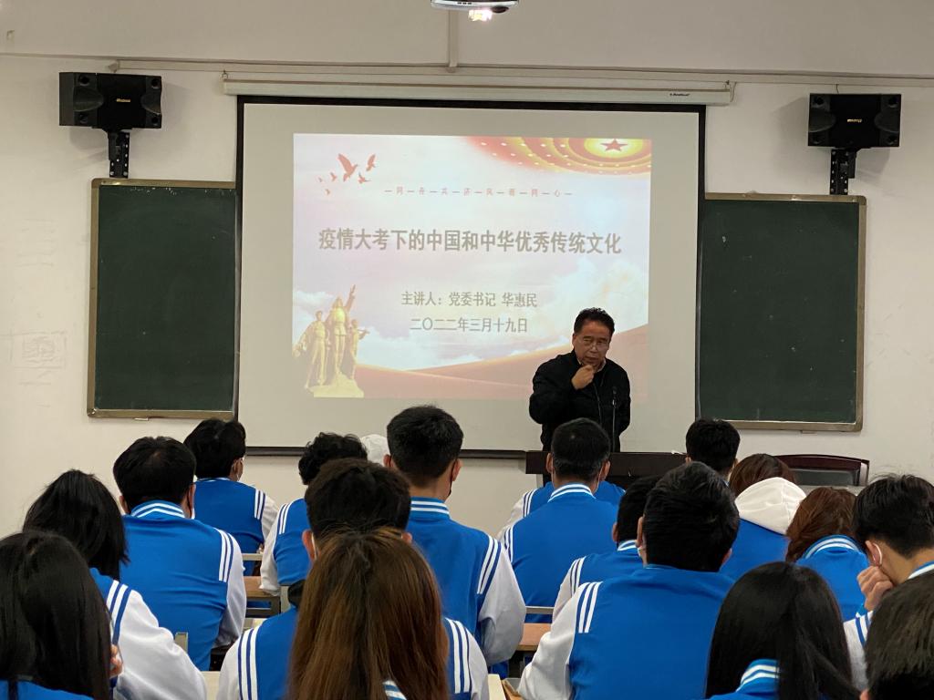 3月19日下午,党委书记华惠民深入威廉体育williamhill,围绕“疫情大考下的中国和中华优秀传统文化”这一主题,为公司班子成员和团学干部讲授了一堂有思想性、理论性和针对性的抗疫思政大课。