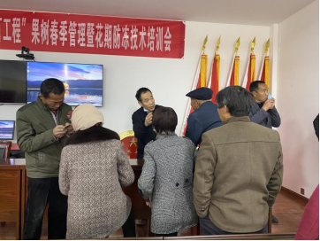 会上,宋金东采用通俗易懂的语言从果园冻害、霜害、冷害的表现、原因及预防措施等方面进行了详细讲解,结合果农种植过程中遇到的实际问题,对春季果园管理工作进行安排部署。他强调果农要密切注意天气变化,把握果树冻害发生的温度节点,提前做好果园冻害防范准备。其次,宋金东针对果农在进行花期管理、修剪、病虫害防治、农药化肥使用时的注意事项和常见误区进行了分析解释,并提出了科学有效的具体措施。