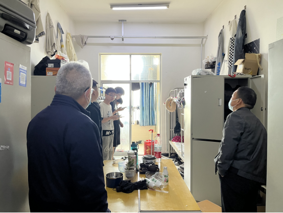 14:00,兵分两路,我和樊永忠老师一起对男生宿舍进行了卫生和安全检查,对发现的问题提出了批评和教育。张副书记和李玉霄对女生宿舍进行了检查,总体情况良好。