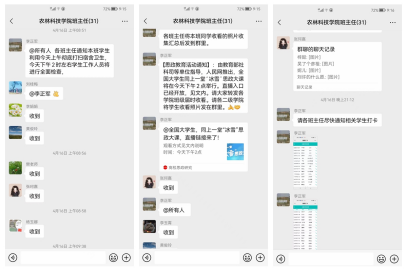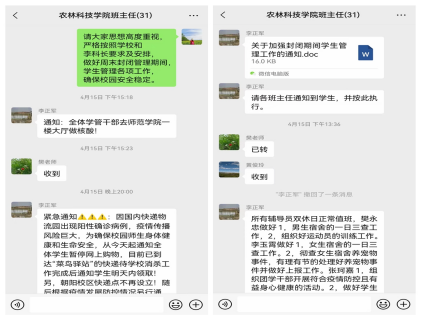 周五,根据员工处下发的《关于加强周末封闭管理期间员工管理工作的紧急通知》,第一时间在班主任群里进行了安排,对各辅导员提出了具体要求。要求所有辅导员本双休日正常值班坚守,樊永忠老师做好男生宿舍的一日三查工作,同时做好运动员的训练工作。李玉霄老师做好女生宿舍的一日三查工作。张珂嘉老师组织开展符合疫情防控且有益身心健康的文体活动。一直以来,杨世选经理非常支持员工工作,经常性指导员工管理工作,多次叮嘱大家防疫无小事,员工管理无小事,一定要做到守土有责、守土担则,守土尽责。张小青副书记也在群里要求大家思想高度重视,严格按照公司要求做好周末员工管理各项工作,确保校园安全稳定。