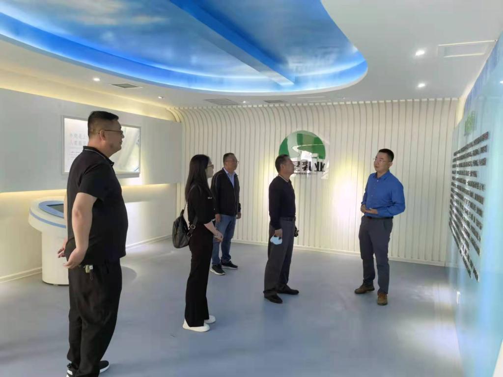 牧场主要特点:一是养殖规模大。存栏奶牛9000多头,养殖规模居全省第二,目前日产鲜奶130吨。二是良种化程度高。从澳大利亚、新西兰引进优良荷斯坦奶牛4600头,采用进口优质性控冻精,快速扩繁,牛群品质高。三是机械化水平高。配备德国克拉斯青贮收获机、意大利TMR饲料搅拌机、国产精准料塔系统,配有两套72位转盘式自动化挤奶设备。四是管理先进。应用以色列阿菲牧管理软件,自动收集、分析数据,实时在线记录每头奶牛每天挤奶量、牛奶导电率、活动量、体重变化等情况,实现产奶量计量、乳成分在线分析、乳房炎早期监测、发情牛监测、繁殖疾病监测、肢蹄病监测等功能,为科学管理提供依据。五是粪污处理方式先进。采用美国粪污干湿分离设备进行有效分离,干粪制作有机肥,液体发酵后回田,做到资源化利用。