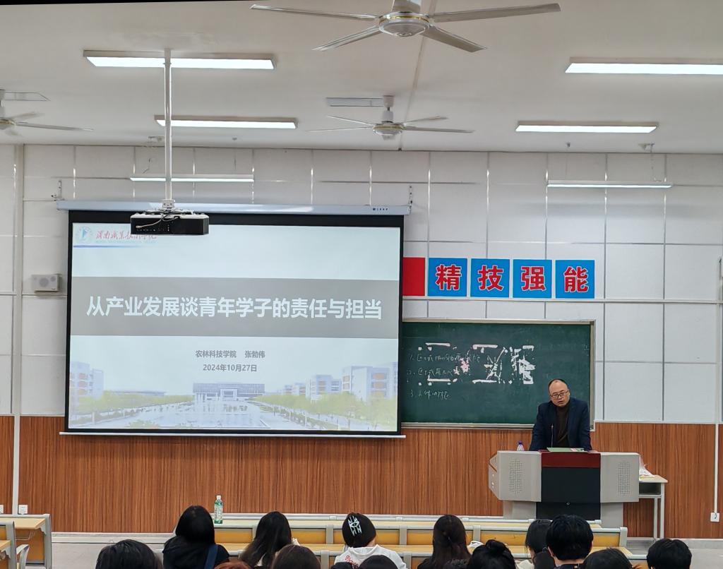为践行党的二十大精神,助力青年在实践中磨砺意志,成为有理想、敢担当、能吃苦、肯奋斗的新时代好青年。10月27日晚,威廉体育williamhill在综合教学楼303多媒体教室,开展了《从产业发展谈青年学子的责任与担当》的专题讲座。讲座由张勃伟副教授主讲,他从产业未来发展趋势、产业发展所面临的问题及政策、青年学子的责任与担当三个方面进行讲解。