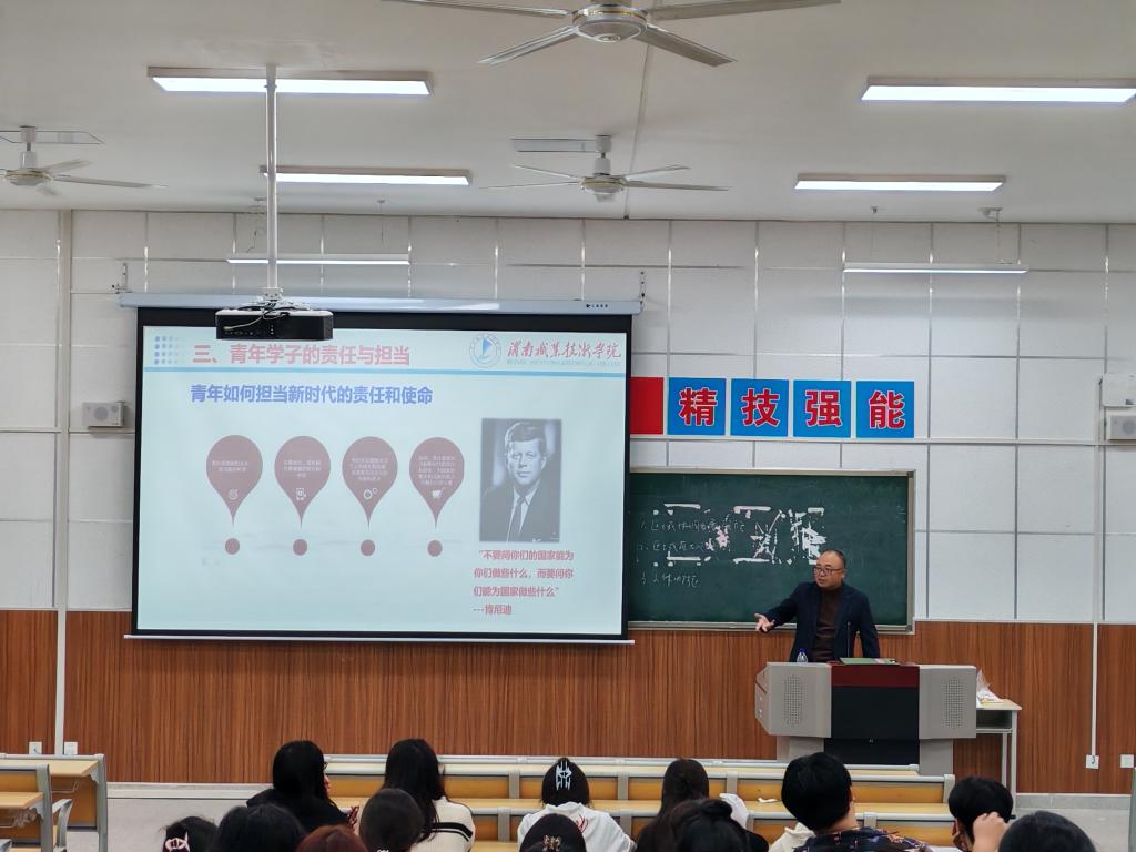 最后,张勃伟用肯尼迪的话“不要问你们的国家能为你们做些什么,而要问你们能为国家做些什么”作为结语,旨在告诉广大学子应该坚定理想信念,树立正确价值观,勇于担当责任,加强自身素质,为中国式现代化建设添砖加瓦!(撰稿:威廉体育williamhill 张勃伟 审核:杨世选)