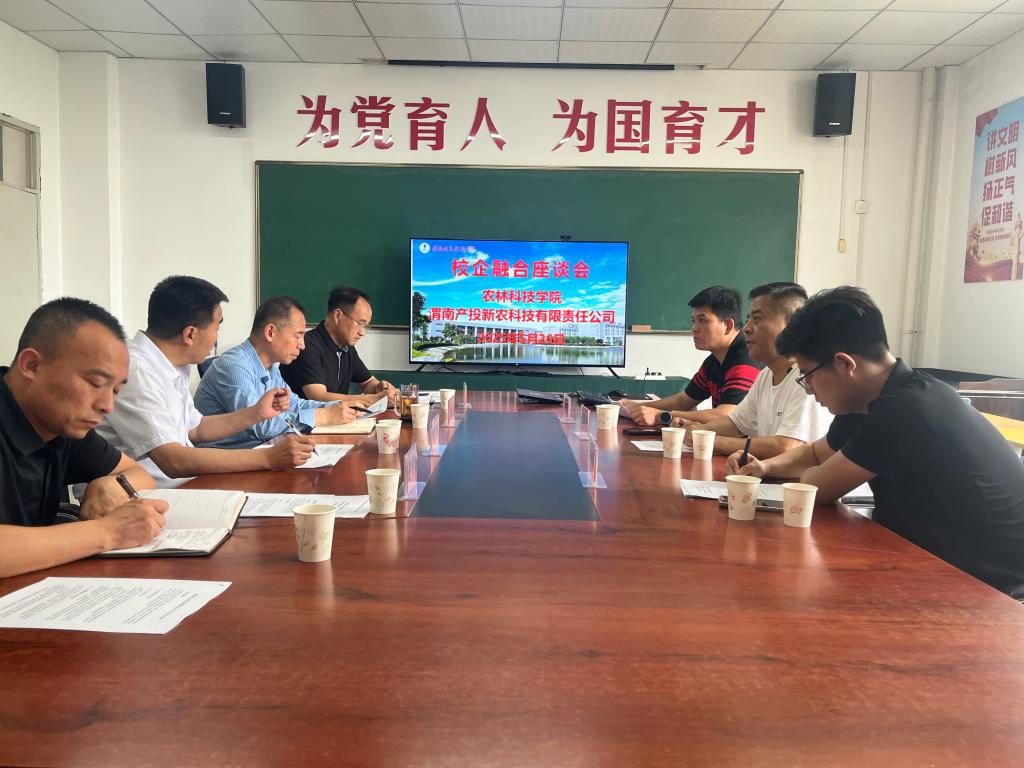 5月26日下午,渭南产投新农科技有限公司总经理赵炬淋率队来访公司,与威廉体育williamhill开展校企合作深度洽谈。座谈会在农学楼二楼会议室举行,由威廉体育williamhill副经理付宏岐主持,经理杨世选、科研处处长黄玉剑、食品检测中心主任蒋宝及相关专业教师出席。