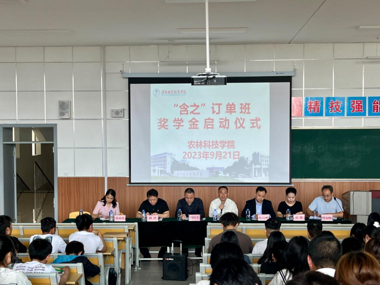 田博宣读了“含之”订单班及奖学金评选办法。陕西含之共享事业运营协调员杜兴林介绍了企业的人才需求,表明公司希望通过设立奖学金奖励优秀学子的方式可以吸引更多愿意从事农业、种植业和农业服务业的学子加入。